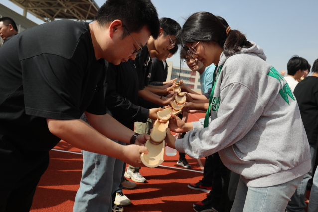 在“急速搬运工——农田物资接力赛”中,师生们肩挑扁担,跨越重重障碍物,接力运送 “粮食”。比赛过程紧张激烈,大家不仅要比拼速度,还要确保“粮食”少洒落,充分考验了团队成员的抗压协作能力。