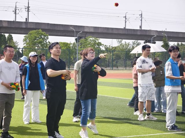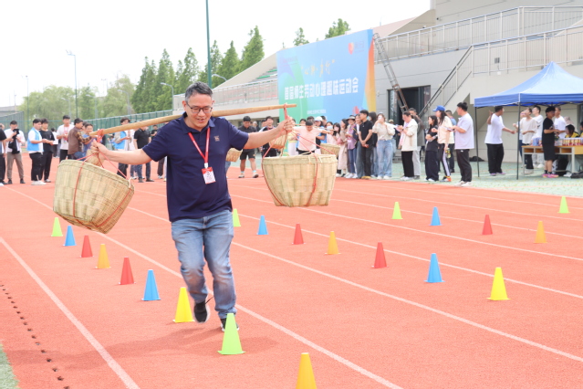 “精准投喂——果园采摘大作战”则充满趣味,参赛师生密切配合,站在指定区域外的队友专注地将“水果”投向背篓,负责接球的队友全神贯注,努力接住每一个“水果”,在提升专注力与耐心的同时,也增强了团队间的信任。