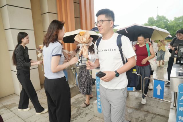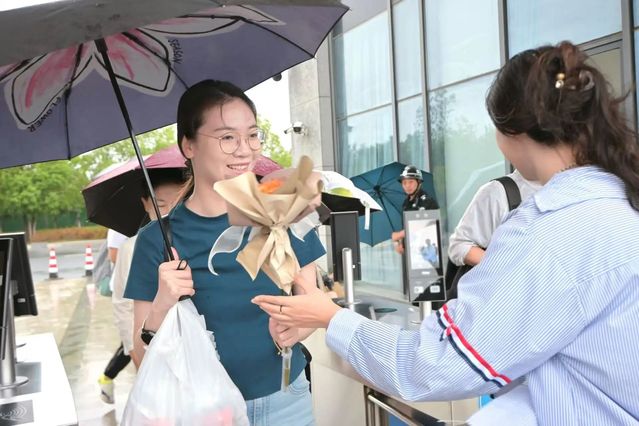 清晨的校园东门,细雨蒙蒙,暖意融融。一群手捧鲜花的学生早早在此等候,他们手中的花朵色彩鲜艳、香气淡雅,每一朵都承载着对老师的敬意与感谢。当老师们陆续走进校园时,学生们立刻围上前,双手递上鲜花,轻声道一句“老师,教师节快乐!”。稚嫩的声音与灿烂的笑容,搭配着娇艳的花朵,让老师们的脸上瞬间洋溢起幸福的笑容,不少老师拿出手机记录下这温馨的瞬间,小小的东门成了校园里最早传递节日温情的地方。