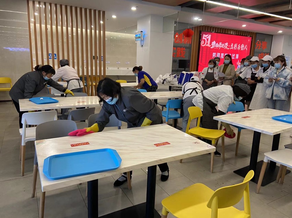 为庆祝“五一”国际劳动节,积极丰富疫情防控校园封闭管理期间校园文化生活,充分调动员工工作积极性、主动性和创造性,激发职工的爱岗敬业精神,营造“比、学、帮、超”的良好氛围,展现后勤员工的风采,后勤处于4月30日下午举办“劳动最光荣、出彩后勤人”劳动技能大比拼,来自校园食堂、超市、物业、安保等50名员工参加了本次活动。
