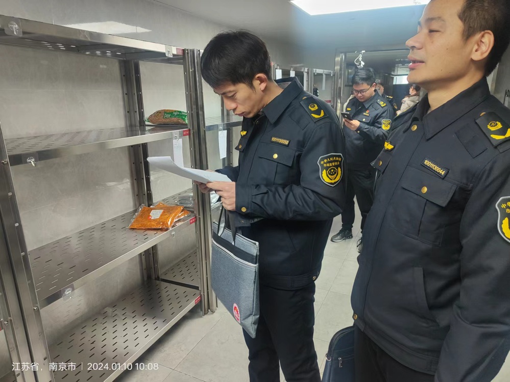 为落实南京市市场监督局校园食品安全排查整治专项行动,2024年1月10日上午,高淳区市场监督局食品科赵金朋科长、高淳区开发区分局吕鹏飞局长带队对我校食堂食品安全进行检查,后勤处周涛及食堂现场负责人陪同。