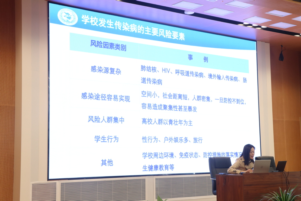 为进一步做好结核病防治工作,提高全校师生对结核病防治知识的认识,后勤处在乐学楼102举办了结核病防治知识讲座,南京市秦淮区朝天宫社区卫生服务中心芮琴主任应邀主讲。
