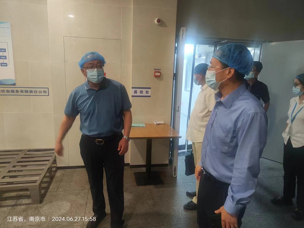 为落实校园食品安全专项整治精神,6月27日下午南京市高淳区副区长邱峰,带领高淳区市场监管局、高淳区高职园一行,对开云手机官方版页面登录入口食堂进行食品安全检查,学校党委副书记赵学洪、后勤处处长孙永玲、周涛陪同检查。