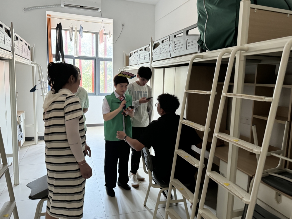 为更好地为新生提供帮助,宿管阿姨们分散到宿舍楼宇每一层,核对新生住宿信息,耐心解答学生关于宿舍设施、电费充值、空调使用等问题。物业工程团队专人驻点,对新学生宿舍设施设备问题及时上门维修。
