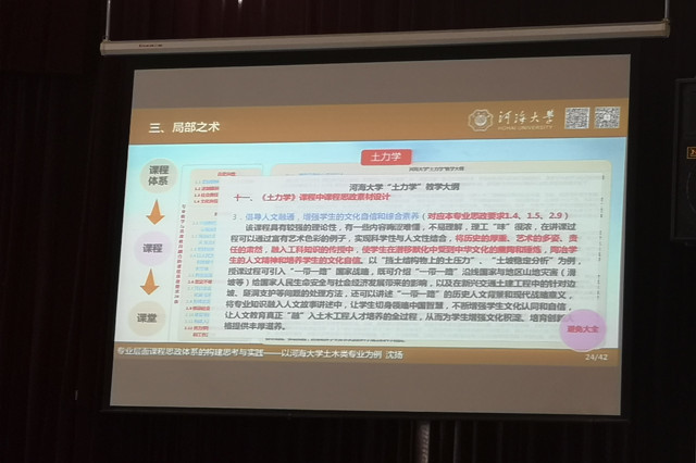 1月13日,学院邀请校外专家对老师们进行课程思政专题培训。河海大学教务处处长,博士研究生导师沈扬教授做关于专业层面课程思政体系的构建思考和实践——以河海大学土木类专业为例的报告,沈教授以河海大学土木类专业课程思政建设为例,生动有趣的讲述了推进课程思政建设的思路,方法及具体实施案例,对我院实施课程思政建设提出指导性的意见和建议。