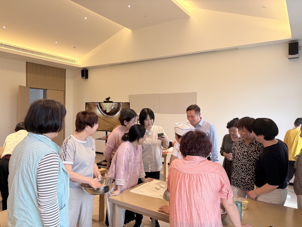 在吕碧璇的引导下,周云龙院长实地考察了社区便民服务中心、文化活动室等场所,并走进社区老年大学面点班课堂,观摩教学场景及学员作品成果。面点班教学生动展示了社区教育的实践性与普惠性,周云龙对河滨社区“贴近需求、服务民生”的办学模式表示高度赞赏。