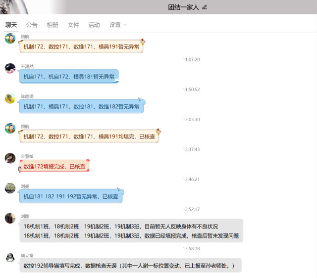 自从防疫战打响后,我们系的七仙女和筷子兄弟(辅导员)便成为了网络那头最牵挂学生的那个人。虽然经常会出现因为学生在睡觉,联系不上的情况、学生填写信息格式错了,反复打回填写等等情况。虽然辅导员们经常会说自己都要被学生填写的信息气到老十岁了、会说等开了学见到他们一定要拉到办公室好好谈谈心。但是每次学生出现了任何问题,他们一定是最焦急的、冲在第一线的那个人,反复的联系,反复的确认。事前事后一次次的联系家长,各种交代。只为了学生每日告知的一句“老师我一切都好!”