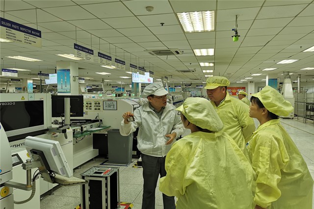 会后,李书记一行对企业的相关车间进行了参观,对南京飞腾电子科技有限公司所从事的相关技术工种有了更深入了解。