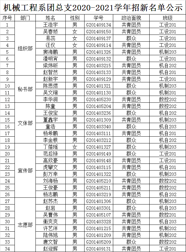 最终34位新生顺利通过面试,为团总支注入了新鲜血液力量。希望在机械工程系团总支这个大家庭里,这34名学生可以尽情绽放光芒,成就最好的自己。