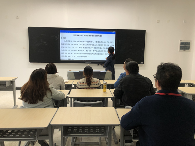 为深入贯彻落实《国家职业教育改革实施方案》、《教育信息化2.0行动》和落实立德树人根本任务,坚持“以赛促教、以赛促学,以赛促改、以赛促建”的总体思路,引导学校和教师以立德树人为根本任务,推进高水平、结构化教师教学团队在信息技术应用、团队协作等方面的水平,构建职业教育教学质量持续改进的良好生态。 2021年10月26日下午,机械设计与制造教研室全体教师思学楼110教室对《教师基本能力大赛文件》进行了学习,本次会议由孙菁老师主持。
