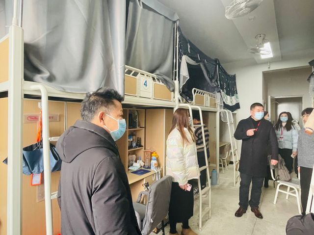 2月19日,机械工程系主任范世祥、党支部副书记李杰、学工干事顾航和全体机械工程系辅导员前往学生宿舍检查学生返校情况,督促学生及时做校内核酸检测、打扫宿舍卫生、保持通风、查看违章电器。