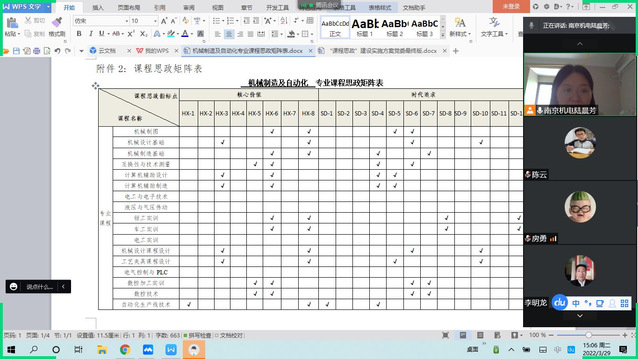 为贯彻落实《开云手机官方版页面登录入口“课程思政”建设实施方案(2021年-2023年)》、更好地推进课程思政建设,2022年3月29日下午,机械制造及自动化教研室全体成员通过腾讯会议召开了主题为“课程思政建设研讨”的教研活动,旨在讨论专业课程思政元素、完善专业课程思政矩阵表,本次会议由陆晨芳老师主持。
