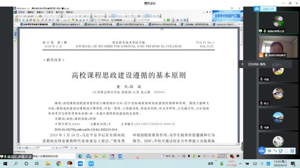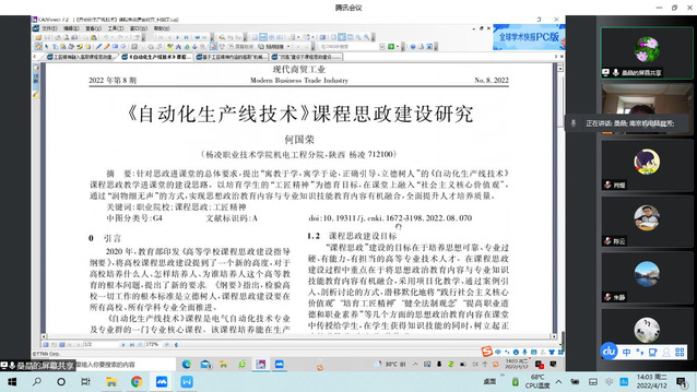 为结合专业特色,将“思政内容”融入专业人才培养方案,2022年4月12日下午,机械制造及自动化教研室全体成员通过腾讯会议召开了主题为“人才培养与思政建设相融合”的教研活动,旨在讨论如何将思政元素融入人才培养方案,本次会议由桑晶老师和陆晨芳老师主持。