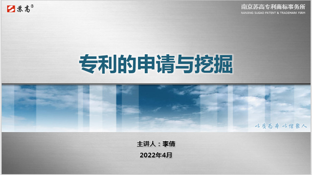 讲座中,南京天翼专利代理有限责任公司汤志武老师、南京苏高专利商标事务所(普通合伙)李倩老师分别围绕专利基础知识、技术交底书的撰写技巧和专利挖掘进行讲解。她详细介绍了专利的概念、专利申请知识、专利申请文件、专利申请程序、申请专利的准备等内容。另外,细致讲解了专利申请的流程和请求书、权利要求书、说明书等专利文件的组成部分,并通过实例,重点描述了专利说明书中技术领域、背景技术、发明内容、有益性效果等撰写的具体要求。