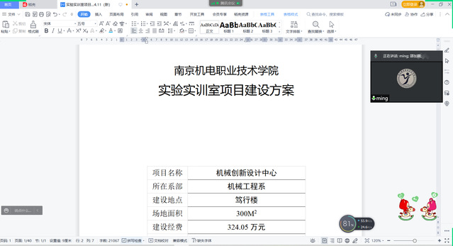 2022年4月12日下午,机械设计与制造教研室全体老师在腾讯会议线上平台对本专业的机械创新设计中心建设方案进行研讨,会议由教研室负责人孙菁主持。