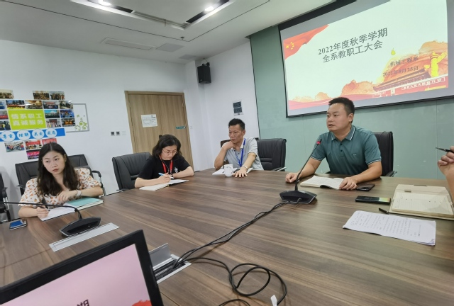 8月25日下午,我系在育德楼303会议室召开了2022-2023学年新学期第一次全体教工会议,总结上学年所取得的成绩、安排部署新学期各项工作。会议由系主任范世祥主持,分管院长孔德丽、机械工程系党支部书记李杰、副主任黄晓萍和全体教职工参加了本次会议。