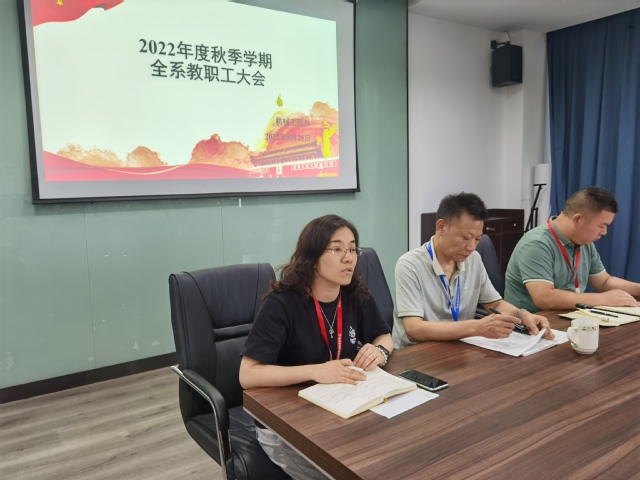 李书记就新学期系部的重点工作从党建工作、安全工作、专业建设、培训工作、学生工作、招生工作、两大战略等七个方面进行了安排部署。他强调党的二十大召开在即,全体教职工一定要提高政治站位,加强政治敏锐性教育。在日常工作学习中,积极开展喜迎“二十大”系列活动,同时也要落实好学院党委工作,从严治党、加强意识形态教育、党风廉政建设教育,守牢意识形态主阵地。学生是基石,教育工作者要注重日常的学习,立德树人,做好新学期的规划与发展。