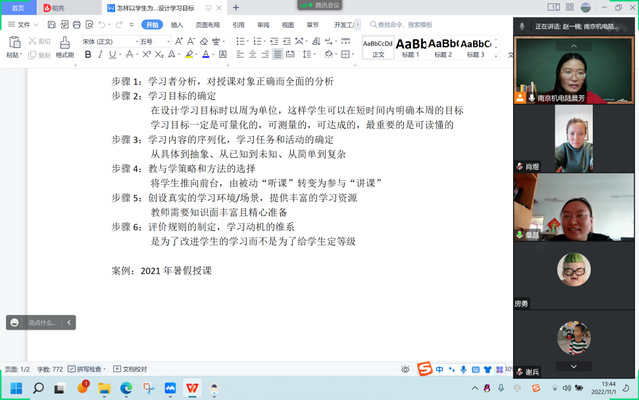 10月18日下午,机械制造及自动化教研室开展了本学期的第九次教研活动,本次活动的主题是:如何以学生为发展中心设计学习目标?受疫情影响,本次活动有六位老师通过腾讯会议线上参加,三位老师线下参加,教研会由陆晨芳老师主持。