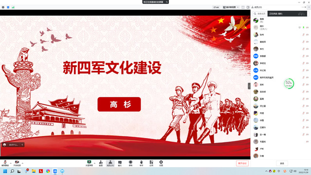 为弘扬新四军的铁军精神,11月29日下午3:00,机械工程系党支部组织全体党员在线聆听思政中心高杉老师关于新四军文化建设的党史学习讲座。