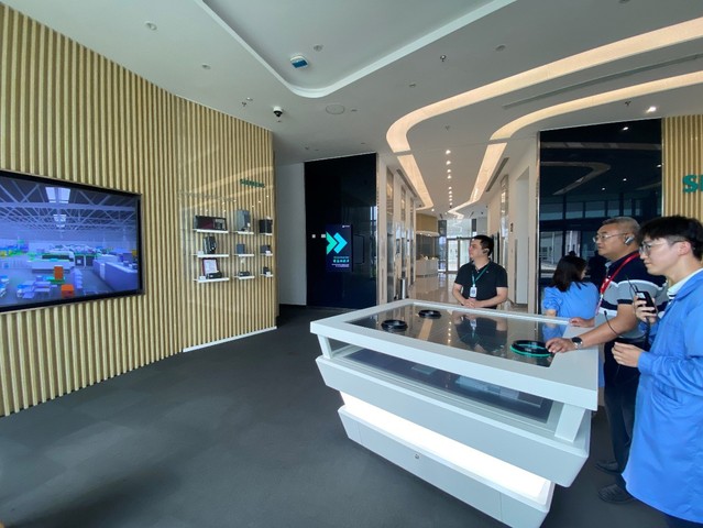 西门子数控(南京)有限公司是知名的数字化控制组件研发生产企业,主要从事数控系统、驱动器、可编程逻辑控制器等产品的研发和制造。在参观交流过程中,工作人员通过现场讲解和播放3D微视频向大家介绍了企业文化、车间环境、产品特色。随后,工作人员带领大家参观了公司的智能化存储仓库和两个数字化生产工厂,通过技术人员的讲解,大家对数控电子元器件的自动化生产的工艺流程、产线效率精益化管理模式、协同生产线的组建等生产技术及管理理念都有了初步的了解,感受智能制造的魅力,深刻体会了数字孪生在工厂建造过程中的应用。
