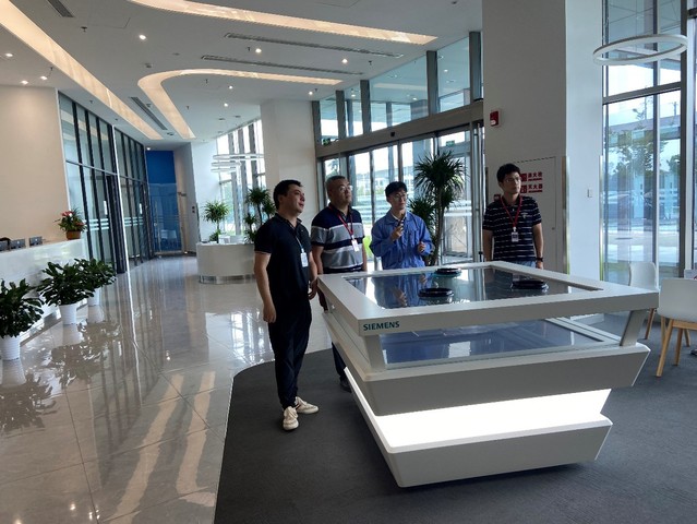 西门子数控(南京)有限公司是知名的数字化控制组件研发生产企业,主要从事数控系统、驱动器、可编程逻辑控制器等产品的研发和制造。在参观交流过程中,工作人员通过现场讲解和播放3D微视频向大家介绍了企业文化、车间环境、产品特色。随后,工作人员带领大家参观了公司的智能化存储仓库和两个数字化生产工厂,通过技术人员的讲解,大家对数控电子元器件的自动化生产的工艺流程、产线效率精益化管理模式、协同生产线的组建等生产技术及管理理念都有了初步的了解,感受智能制造的魅力,深刻体会了数字孪生在工厂建造过程中的应用。