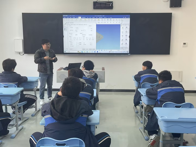 21日上午,毛奇和项立富就职业技能竞赛兴趣小组成立、校本教材规划同响水中专展开交流研讨。首先,项立富向高一年级学生介绍了数字化设计与制造赛项比赛内容,比赛规程以及后期需要学习的专业知识、技能目标等。随后,他给同学们讲解了赛项中运用的加工软件,界面操作、功能的使用,为学生指明了学习方向。