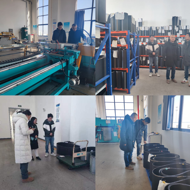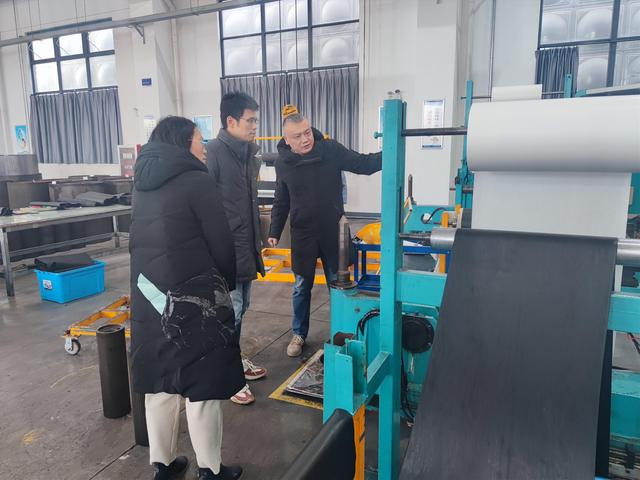 首先,公司总经理朱彤全面介绍了公司业务概况,公司专业从事传动带和输送带类及相关设备科研、开发、生产和销售,产品广泛应用于环保、纺织、烟草、食品、建材、汽车制造、纸业等行业中。随后,朱彤带老师们参观生产车间、检验室、专用模具库房及成品库房,了解传送带的生产流程。