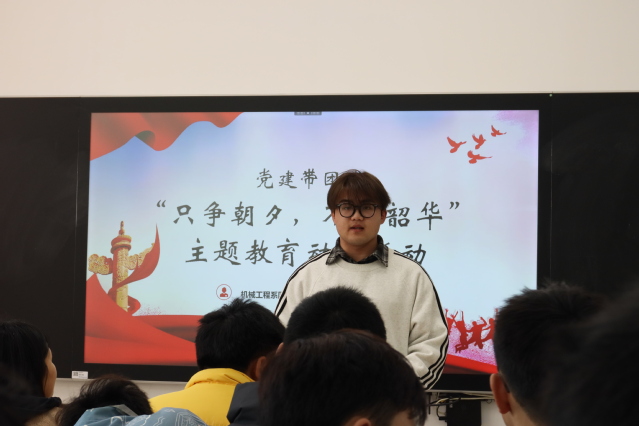 为选树先进典型,发挥榜样引领作用,切实推进“卓越行动”计划,展示系部“五育并举”学生工作成效。3月20日,机械工程系团委在思学楼305教室举办“只争朝夕,不负韶华”主题教育动员活动。机械工程系党支部副书记李杰、团委书记王晨歌、就业干事顾航、学工干事原智慧出席活动。本次活动由团委组织部干事柴浩南主持。