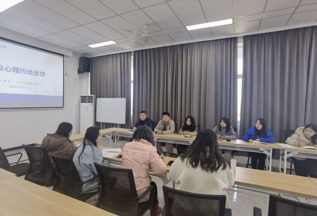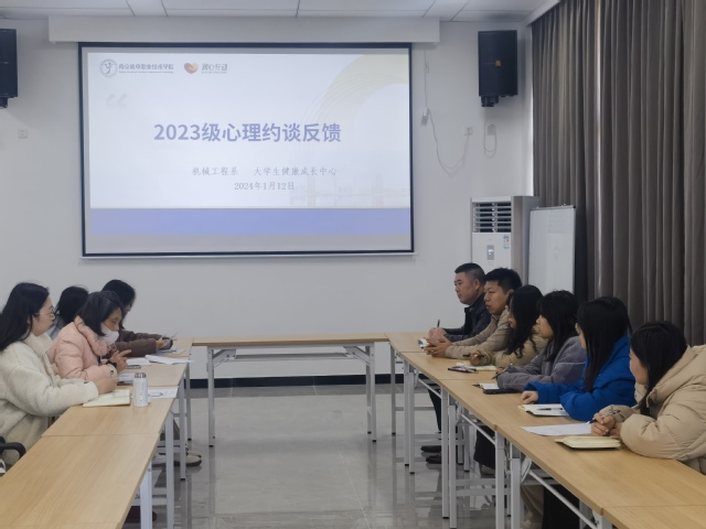 为进一步提升我系心理工作质量与效率,更好地为学生提供科学、有效的心理健康服务与指导,2024年1月12日,机械工程系心理气象站邀请大学生健康成长中心周雅萍、杨瑞和张自仪三位老师前来我系对系部2023级学生心理普查及约谈情况做出进一步反馈。机械工程系党支部副书记李杰以及全体23级辅导员参加了此次会议。