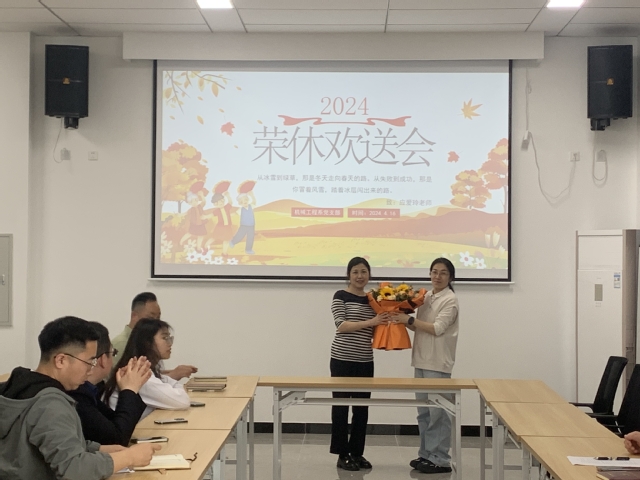 随后,黄晓萍代表机械系向应爱玲老师赠送了鲜花,并祝愿应老师退休后的生活健康快乐。