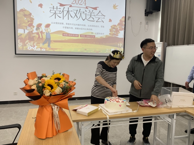 最后,毛奇为应老师赠送荣休纪念品,数控专业教师代表为应老师献上荣休蛋糕。