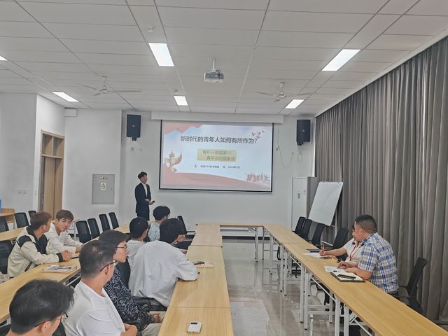为全面贯彻落实党的二十大精神,围绕以学生成长为中心,深化学校思政课改革创新,把思想政治教育贯穿教育教学的全过程,学校党委宣传部联合思想政治教育研究中心、网络思想政治工作中心举办首届大学生讲思政课比赛“思政新征程 青春勇担当”以来,机械工程系各班级依托《习近平新时代中国特色社会主义思想概论》思政课积极参赛,机械工程系于2024年5月31日中午在笃行楼401开展初赛,由机械工程系党支部副书记李杰,网络思政站站长原智慧担任评委,本次比赛由原智慧主持。
