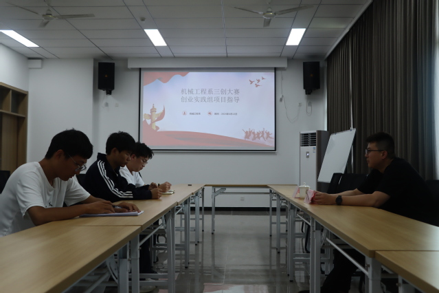 为了进一步激发学生的创新创业热情,提高学生的创业计划书撰写能力,机械工程系邀请中国就业培训技术指导中心SYB创业讲师、创业指导师(高级)、电子商务师(高级)、南京鑫宁职业技能培训学校校长孙煜于2024年6月13日和6月16日在笃行楼401会议室开展三创大赛创业实践组项目指导。机械工程系主任毛奇、机械工程系团委书记王晨歌、三创大赛创业实践组项目负责人苏晨曦、杨巽程、张庆瑞参加了活动。