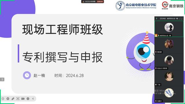 2024年6月28日,南京机电-南京钢铁现场工程师班级成功开展了一场以“专利撰写与申请”为主题的班会活动。此次班会旨在进一步提升班级学员在专利创新、撰写及申请方面的能力,推动班级专利工作取得更大突破。