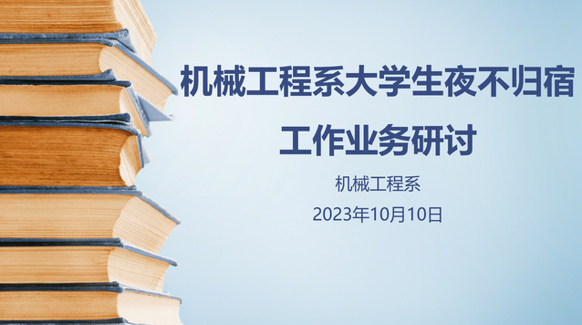 宿舍生活是大学生活的重要组成部分,高校学生的重要生活场地是宿舍,同时也是大学生进行人际交流以及学习的主要区域,因此,系部需要注重宿舍管理,2023年10月10日上午,在育德楼召开了大学生夜不归宿工作业务研讨。本次学习由机械工程系辅导员王潇然主持,系部全体辅导员参加学习。
