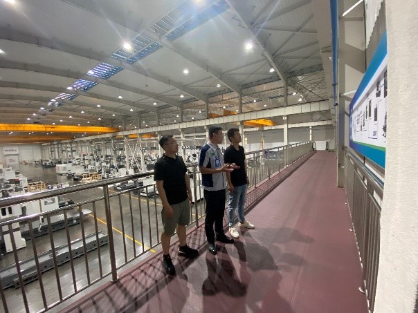 随后,李宗峰带大家参观了公司的数控龙门加工中心、立式加工中心、卧式车床等生产车间,详细地介绍了GDC龙门加工中心、DMC五轴立加等产品特点。参观完,校企双方进行了企业参与职业院校产业学院建设交流,毛奇介绍了学校和系部的发展概况,就我校产业学院建设、同行院校数控装备产业学院建设成功经验进行了分享,提出基于校企双方优势,深度开展产教融合、校企合作,为制造业高质量发展培养新时代高端装备技术技能人才。李宗峰高度肯定并赞扬了学校人才培养取得的成绩,并希望与学校开展校企合作,共同为制造业高质量发展培养新时代高端数控装备技术技能人才。