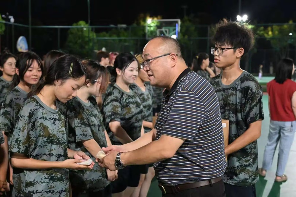 晚会伊始,学院党委副书记、副校长赵学洪与机械工程系党支部副书记李杰携手登台,向全体新生致以深情的中秋祝福,并将承载着团圆之意的月饼逐一分发到每位同学手中,瞬间拉近了师生间的距离。随后,他们与教官、学员们并肩而坐,共同沉浸在这场视觉与情感的双重盛宴之中。
