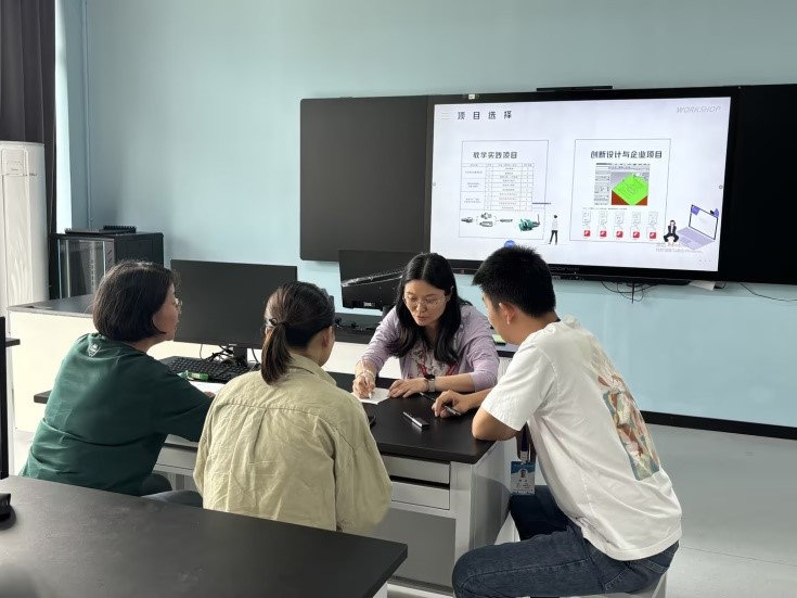 研讨会上,谢兵分别从《数字化制造综合实训》项目选择、项目内容及项目实施三个方面展开详细介绍。接着,教研室教师展开热烈讨论,陆老师指出项目化教学改革的核心在于它突破了传统教学的束缚,将学习与实践紧密结合,通过引导学生参与实际项目,让学生在解决问题的过程中学习知识和技能,从而培养学生的创新思维和实践能力。