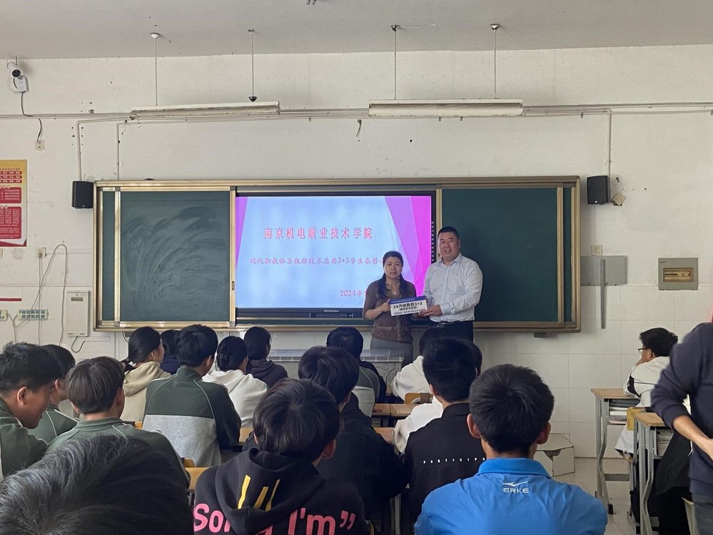 在赣榆中专的交流活动共分三个阶段。活动第一阶段,吴彬深入2023级数控3+3班,给同学们上了“新生第一课”。课上,吴彬通过图文并茂的方式,从学校规模、办学特色、专业发展、数控专业的学习内容、升学渠道以及就业前景进行了详细介绍。第二阶段,李杰对2023级优秀学生进行了表彰并为2024级3+3项目进行了班级授牌。活动第三阶段,双方就“3+3”中高职衔接项目进行交流,与会人员就数控技术应用“3+3”中高职衔接一体化人才培养方案制订及实施、课程建设、教育教学管理等内容进行了探讨交流,就技能大赛中高衔接学生队伍组建、如何加强衔接训练,提升竞技水平进行深入交流。