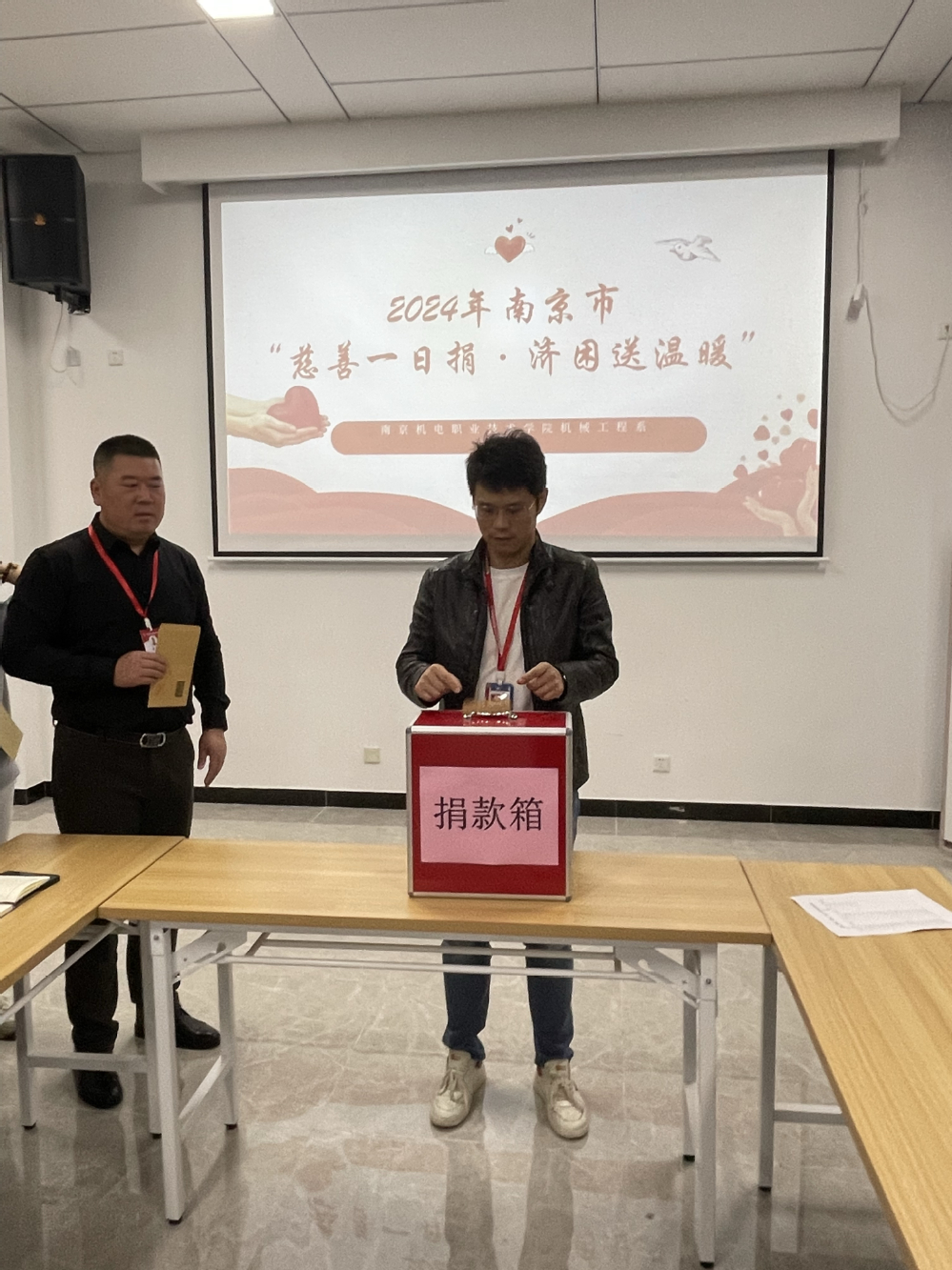 为认真贯彻落实党的二十大精神和习近平总书记关于慈善工作的重要讲话精神,大力弘扬扶贫济困、友爱互助的中华民族传统美德,机械工程系全体教师积极响应新工集团党委关于慈善工作的要求,于10月31日14时在笃行楼401会议室开展“慈善一日捐·济困送温暖”捐款活动,本次活动由党支部副书记李杰主持,机械工程系全体教师参加。