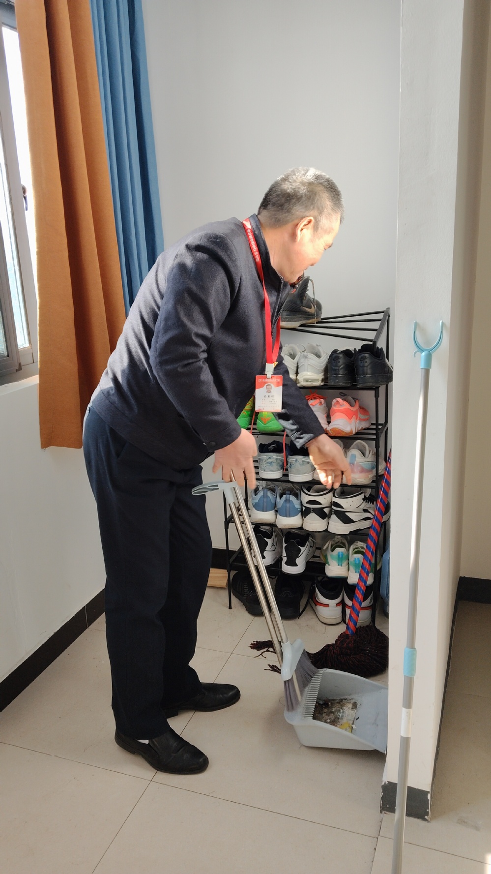13时,机械工程系主任毛奇、党支部副书记李杰、副主任黄晓萍、各专业负责人、辅导员、专任教师前往博雅苑、静思苑宿舍楼,与宿管阿姨一同走访各层宿舍,针对校园禁烟、宿舍卫生管理、合理规划作息、谨防电信网络诈骗等方面对同学们做好教育提醒。与此同时,针对卫生环境需要进一步加强的宿舍,党员老师们积极发挥先锋模范作用,拿起清洁工具协助同学们完成宿舍卫生整改,经过一个小时的分批走访、逐一清洁,24级宿舍整体面貌焕然一新。