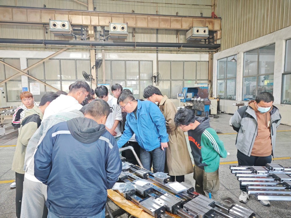 参观过程中,学生在现场结合技术人员的讲解,参观了导轨及滚珠丝杆加工现况。大家听得津津有味,并向技术人员提问许多细节问题。学生纷纷表示,这次参观实习的效果很好,现场真实的工作场景激发了学生的学习热情,将成为他们实践教学的珍贵记忆。对以后的就业充满了信心,更对即将从事机械行业充满了期待。