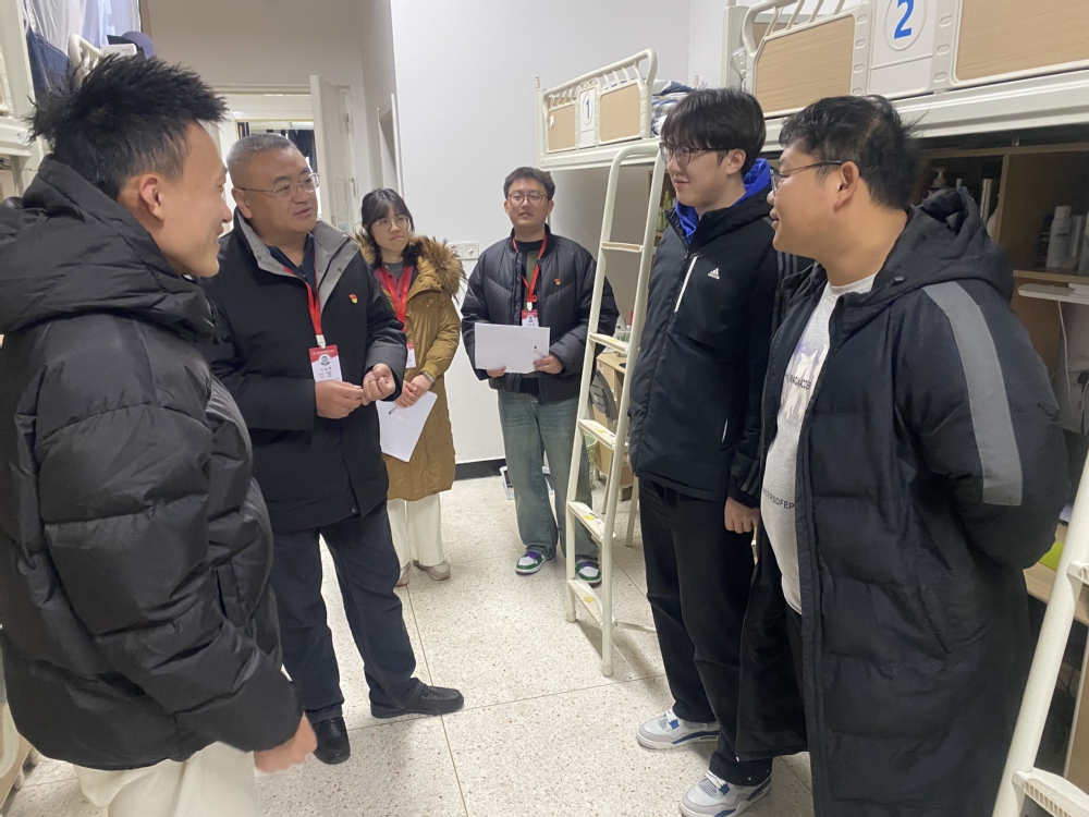 13时10分,机械工程系党支部联络点校领导刁爱军深入学生宿舍,前往润泽苑207宿舍开展走访调研工作。在与同学们的交流中,刁院长首先认真听取了大家对新学期课程安排的意见建议,结合专业特点为同学们制定了切实可行的学习计划。他特别强调,在抓好专业学习的同时,要积极参与科技创新、社会实践等第二课堂活动,全面提升综合素质。刁院长还就同学们关心的实习、就业前景等问题进行了耐心解答,勉励大家珍惜大学时光,努力成长为德才兼备的优秀人才。随后,胡枫书记对宿舍用电安全、消防设施等进行了细致排查,重点检查了违规电器使用情况,并就宿舍安全注意事项向同学们作了详细讲解。整个交流过程气氛融洽,同学们纷纷表示受益匪浅。