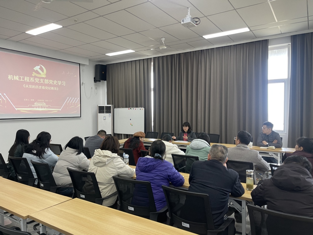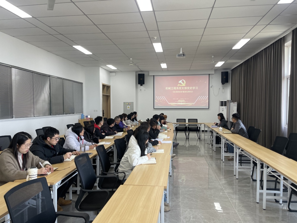机械工程系党支部于2月27日13:30在笃行楼401会议室开展主题为“从党的历史看党纪学习教育”的党史学习专题会议,本次学习由机械工程系党支部书记胡枫主持,全体党员参加。