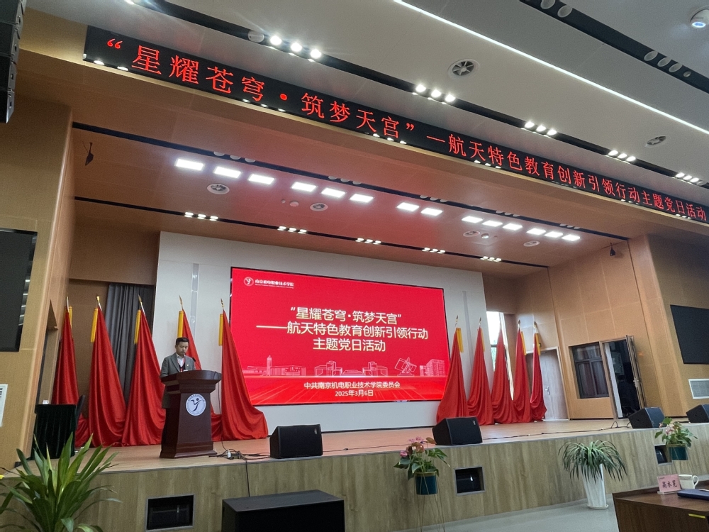 2025年3月6日14:00,开云手机官方版页面登录入口在乐学楼101举办了“星耀苍穹・筑梦天宫”航天特色教育主题党日活动,本次活动旨在响应习近平总书记的号召,激发学生的科学兴趣,弘扬航天精神,培养学生的创新精神和实践能力,推动学校专业建设与航天文化的深度融合。中国航天科技集团有限公司党组副书记、董事方向明,中国人才研究会副会长、航天科技教育联盟秘书长、北京航天探索馆馆长周岫彬,航天科技集团党群工作部三级业务经理张广科,北京神舟航天软件技术股份有限公司市场营销部主管张凇铭,学校党委书记、校长周庆礼,党委委员、副校长刁爱军,党委委员、副校长孔德丽,党委委员、纪委书记姜振宇,党委委员夏玲玲、党委委员高水冕以及全体党员教师和学生代表参加了本次活动。