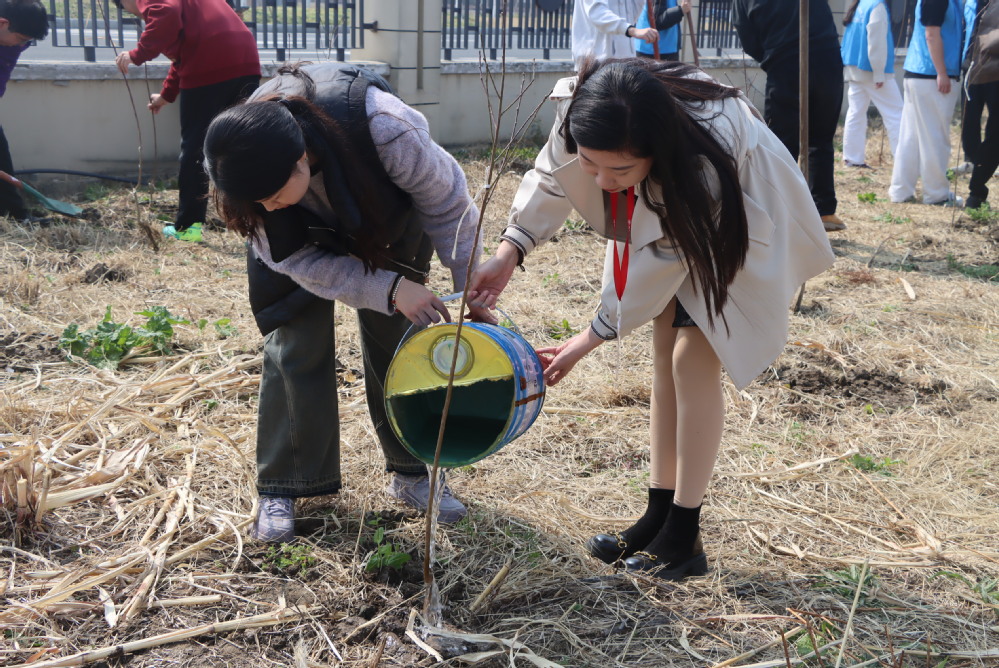 在植树活动现场,所有参与者的热情都非常高涨,大家分工明确,合作无间。党员们积极带头,挥动铁锹,用力挖掘着一个个植树的坑洞,而团员青年们则紧随其后,他们负责扶正树苗,小心翼翼地将土壤填回坑中,并且确保树苗稳固。在培土之后,大家又齐心协力地为每一棵树苗浇水,确保它们能够得到充足的水分。整个植树过程中的每一个环节都井然有序,有条不紊地进行着。经过一中午的辛勤劳动和共同努力,大家共栽种了50棵树木,希望这些新栽种的树木能够在来年为校园增添一片生机勃勃的新绿。