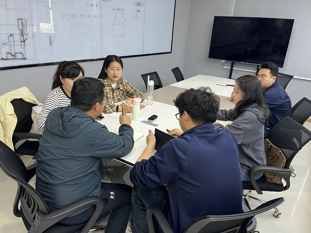 在交流会上,团队首先就学校三创比赛项目向创维电器股份有限公司工业设计中心肖华经理咨询专业意见。肖华结合家电行业最新发展趋势,从市场需求和技术创新角度,对电冰箱、洗衣机等产品的设计创新提出了专业建议。他强调,设计创新应立足用户痛点,在功能集成、外观美学、CMF创新等维度探索差异化创新路径,提升产品竞争力。