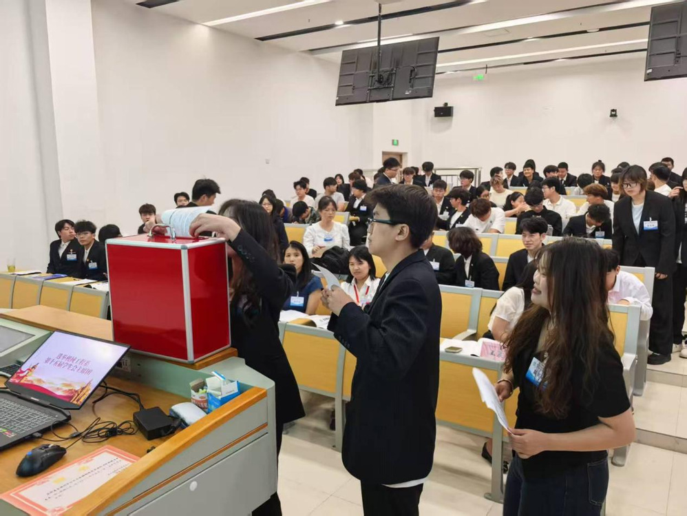 随后,大会步入投票选举阶段,现场秩序井然。代表们依次走上讲台进行投票,通过差额选举的方式,在6名候选人中孟浏、汪翔、陈文聪同学脱颖而出,成为开云手机官方版页面登录入口机械工程系第十五届学生会主席团成员。