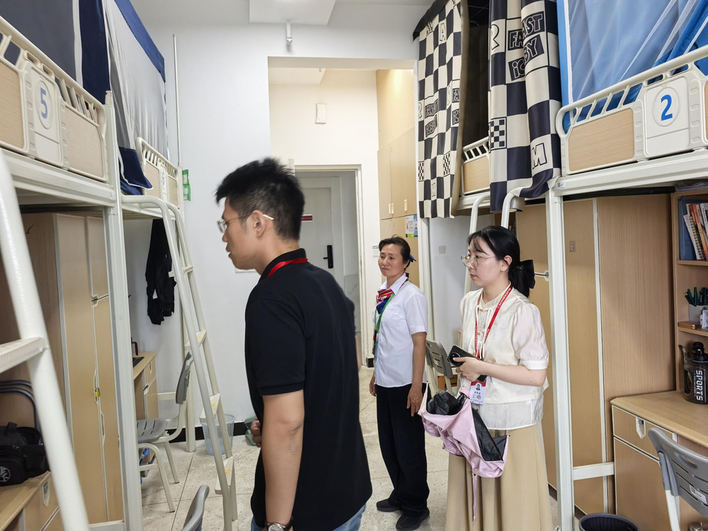 本次排查以“防患未然、不留死角”为原则,重点围绕用电安全、消防安全、环境卫生、禁烟教育等方面展开。排查中,系部班子、辅导员老师深入各楼层宿舍,重点检查违规电器使用、宿舍禁烟等情况,同时对宿舍卫生、通风状况以及宿舍环境卫生进行督导。辅导员老师们与同学们亲切交流,询问关心假期安排,重点强调端午期间外出交通安全、饮食卫生、谨防电信网络诈骗等注意事项,引导学生增强安全防范意识,“回家路上注意安全,留校同学们有任何问题随时联系老师。”一句句暖心叮嘱让此次安全检查兼具“温度”和“力度”,也让同学们切实感受到学校的关怀。