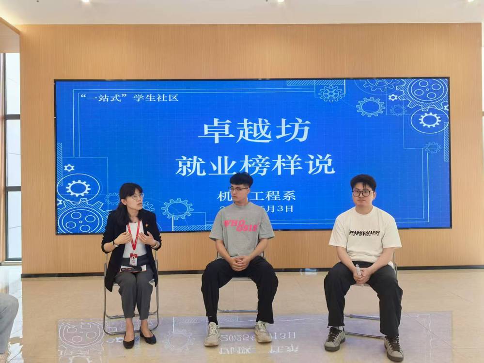 2025年6月3日下午,机械工程系党支部“卓越坊”就业榜样说活动在“一站式”学生社区顺利开展。本次活动邀请了三位在升学与就业领域表现优秀的学长担任主讲人。机械工程系党支部书记胡枫、辅导员代表、23级学生干部代表、少数民族学生与困难学生代表参与本次活动。
